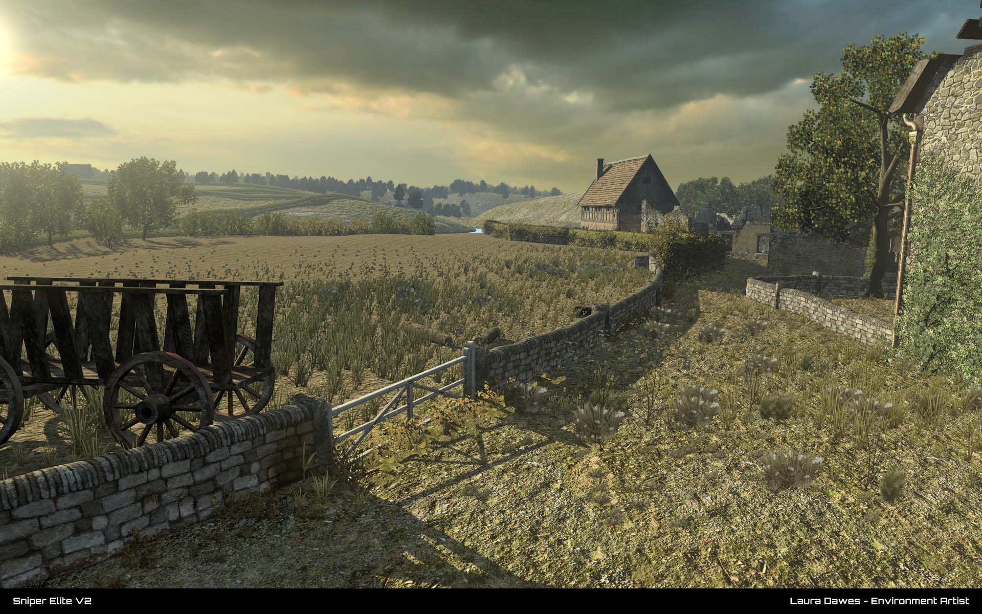 This small level is the bonus level customers received for pre-ordering the game. We did not have long to build it, so while one coworker built the train station and village from existing buildings, I concentrated on the natural terrain leading up to the vantage point. This DLC level was nominated for a Golden Joystick award.
